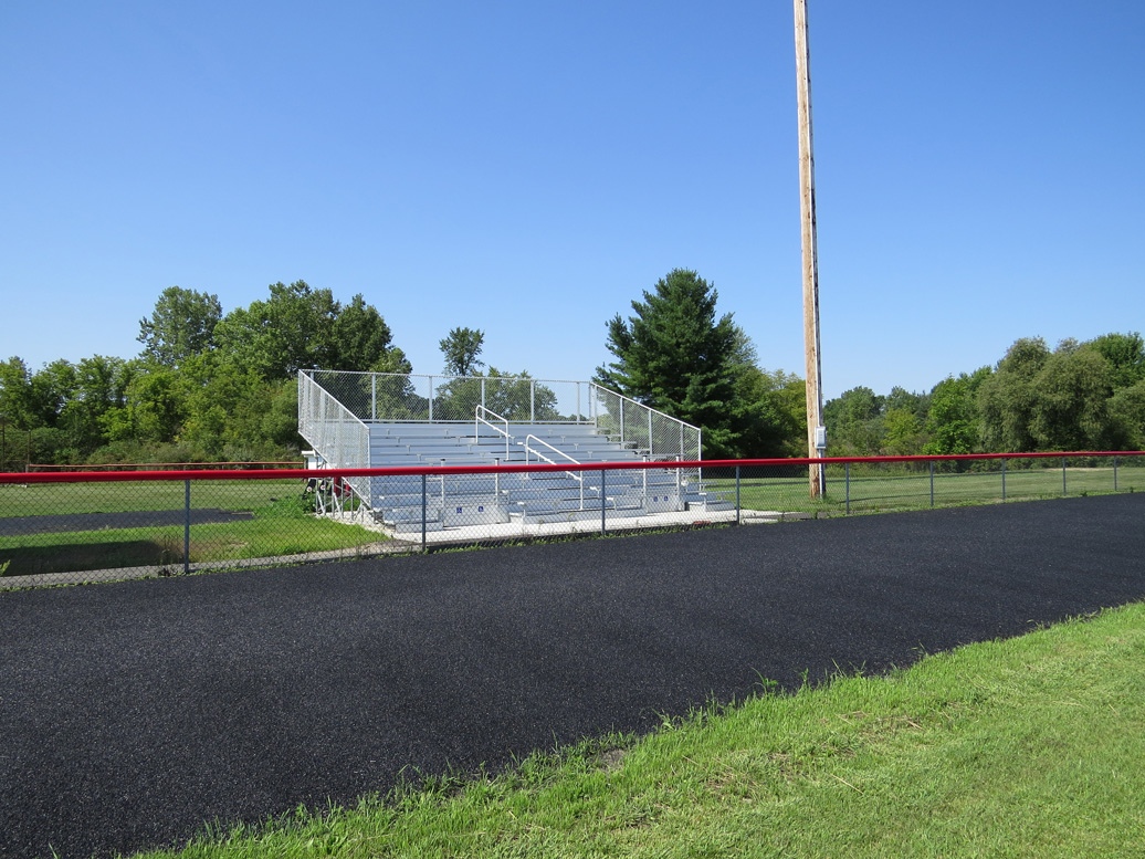 Peck Jr/Sr High School bleachers were constructed after the demolition of existing bleachers. GT Grandstands designed a home side bleacher with 6 rows, semi-closed decking, and wheel chair accessible spaces. The 30” elevated galvanized steel angle frame bleacher is 123' long and seats 410 plus 6 accessible spaces. The visitor side bleacher will also accommodate wheel chair seating and overall will seat 136 spectators. Both sides feature galvanized steel frames.